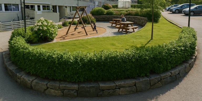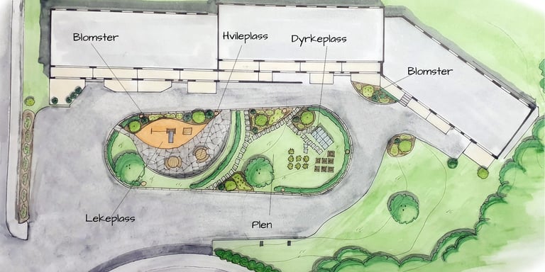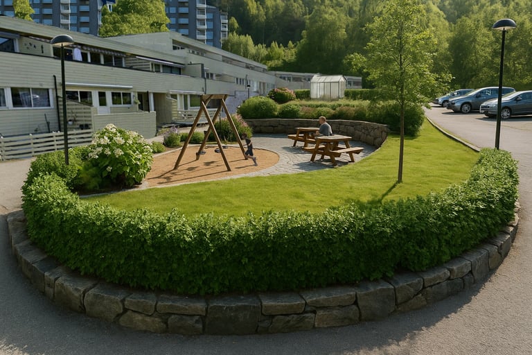 Uteområdet fremstår nå som helhetlig og gjennomført – med en klar struktur, bedre flyt og økt trivsel i hverdagen.
