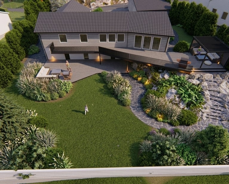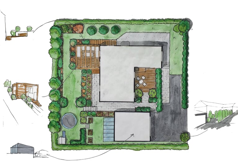 En gjennomtenkt hageplan utviklet for en familie som ønsket en enkel, funksjonell og lettstelt hage tilpasset hverdagsbruk